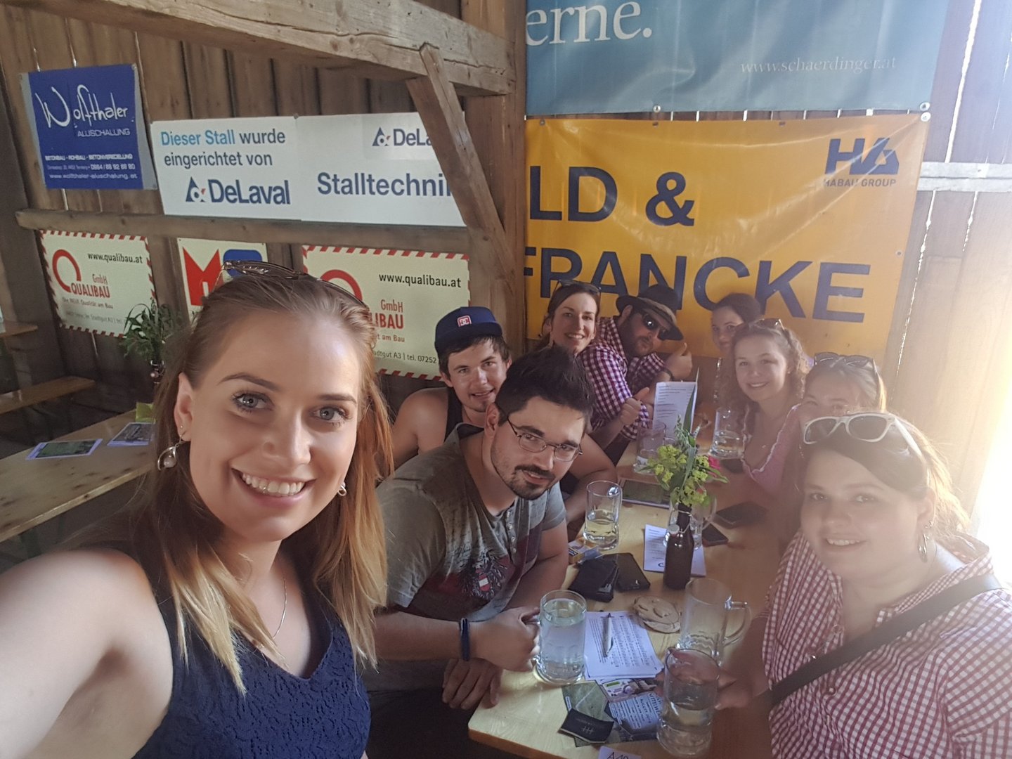 Die 40°C die am 30. Juni am Thermometer gemessen wurden, ließen uns nicht davon abbringen, einen erfolgreichen und lehrreichen Tag in Oberösterreich zu verbringen. Wir starteten mit einer Betriebsbesichtigung bei der Mostpresse Hödlmoser's. Nach ausführlicher Erklärung, wie Apfelsaft, Most, Cyder etc hergestellt wird, durften wir auch selbst gemachtes probieren. ( http://www.hoellhubers.at/) Im Anschluss fuhren wir gegen Mittag zum Hoffest der Landjugend und Steyr Bäurinnen. Hier durften wir ein leckeres Mittagessen mit regionalen Produkten genießen. Nach dem erkunden der regionalen Schmankerl, erkundeten wir auch den Hof sowie den Hofladen der Familie Brandner Leider mussten wir am späten Nachmittag die Heimreise antreten und freuten uns auf eine Abkühlung im See. Wir gratulieren der Landjugend Steyr-Land zum gelungenen Hoffest