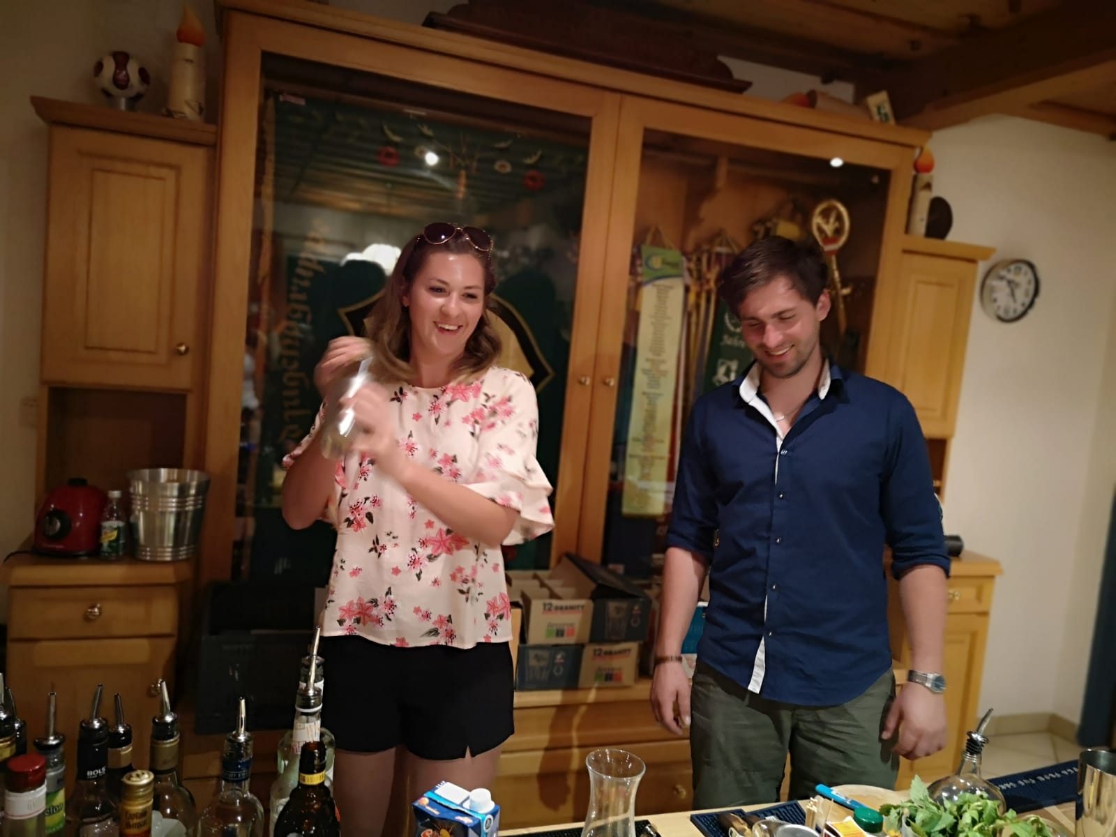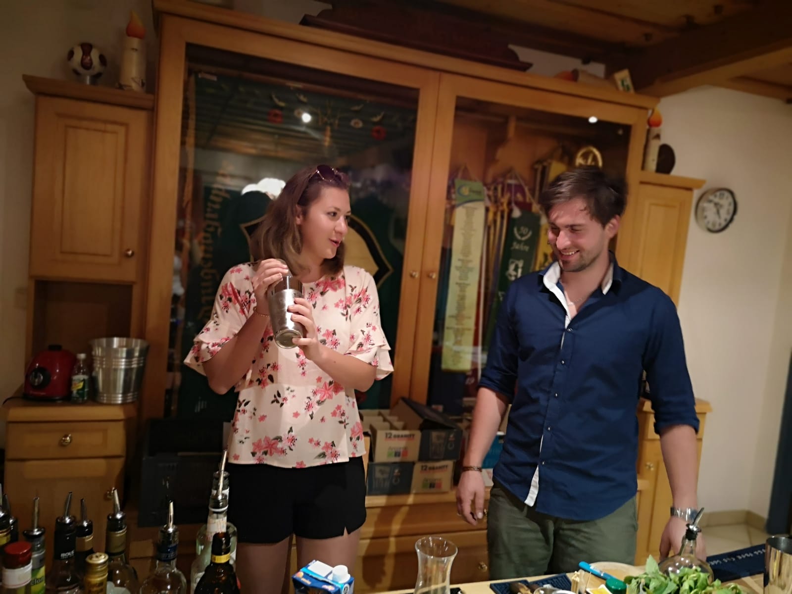 Mojito, Sex on the Beach, Pina Colada, Margarita und viele weitere Cocktails durften wir am 19. Juni bei unserem Cocktailmixkurs probieren. Nach dem uns einiges über die Spirituosen und die richtige Handhabung beim Mixen bzw Schaken beigebracht wurde, durften wir selbst loslegen und einen unserer Lieblingscocktails zaubern. Nachdem der Kurs schon etwas vorangeschritten war, kamen wir auf die Idee aus verschiedenen Spirituosen einige neue Cocktails zu kreieren. Wir, danken Bertram, dass er sich die Zeit genommen hat, mit uns einen so großartigen Kurs zu machen.