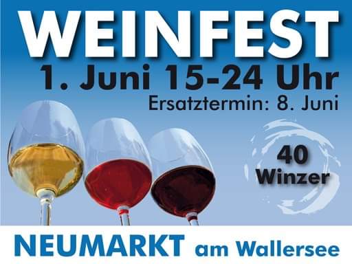 Am 1. Juni 2019 findet bei uns in Neumarkt das Weinfest statt. Selbstverständlich sind auch wir wieder mit unserem Stand vertreten und sorgen für euer leibliches Wohl.